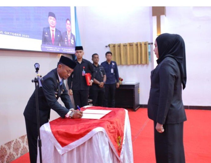 Pelantikan dan pengambilan sumpah pejabat pimpinan tinggi pratama, pejabat administrator pejabat pengawas dan pejabat fungsional lingkup pemerintah Kabupaten Bone dilaksanakan Selasa 6 Oktober 2025 di Lateya riduni, Hj Faidah pun ikut dilantik.